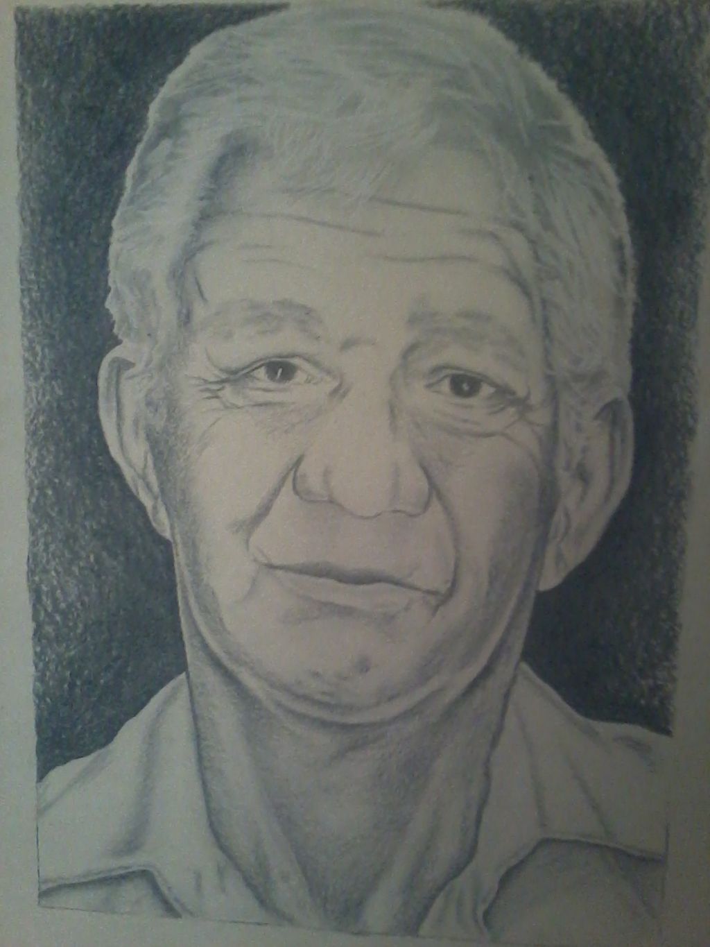 Este é um retrato de um senhor que faleceu há algum tempo. O seu filho me encomendou esse retrato para homenageá-lo. Decidi mostrar para vocês as fases de construção dessa obra explicando como faço para realizar um desenho como esse.